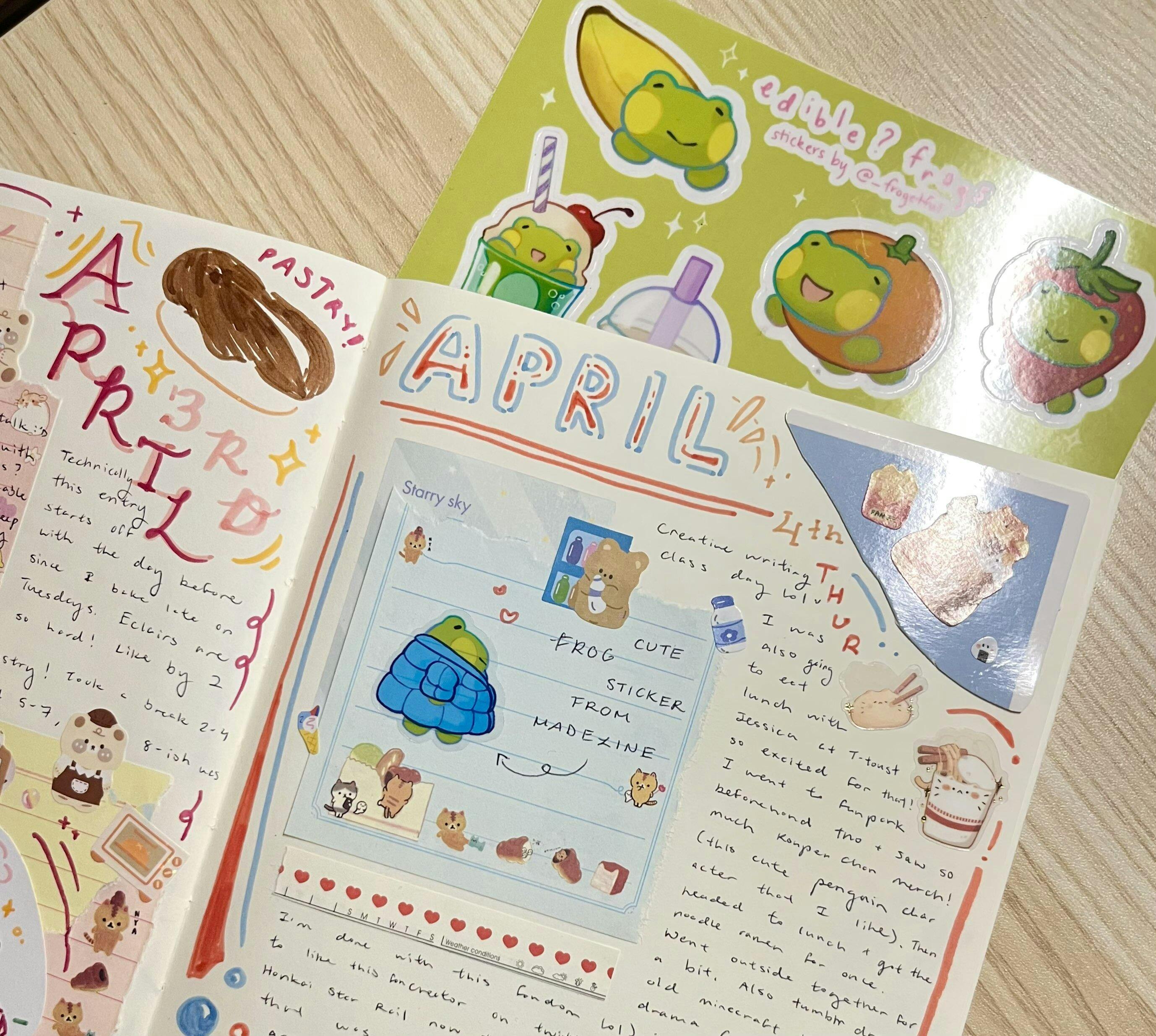For stickers, I got the froggy life 1 and edible frog sticker sheets which is perfect for a journal girlie like me :D All the frogs are so cute and I love food items! So frogs and food are the perfect pair <3 as long as no one actually eats them lol. The coloring is again really vibrant and the stickers are nice and glossy :D They really stand out against my journal spreads :D